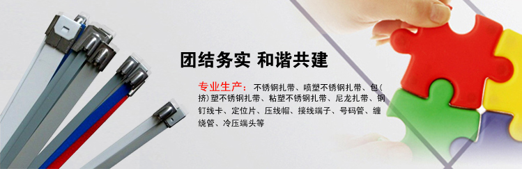 樂(lè)清迎發(fā)電纜附件有限公司專(zhuān)業(yè)生產(chǎn)不銹鋼扎帶、噴塑不銹鋼扎帶、包(擠)塑不銹鋼扎帶、粘塑不銹鋼扎帶、尼龍?jiān)鷰、鋼釘線(xiàn)卡、定位...